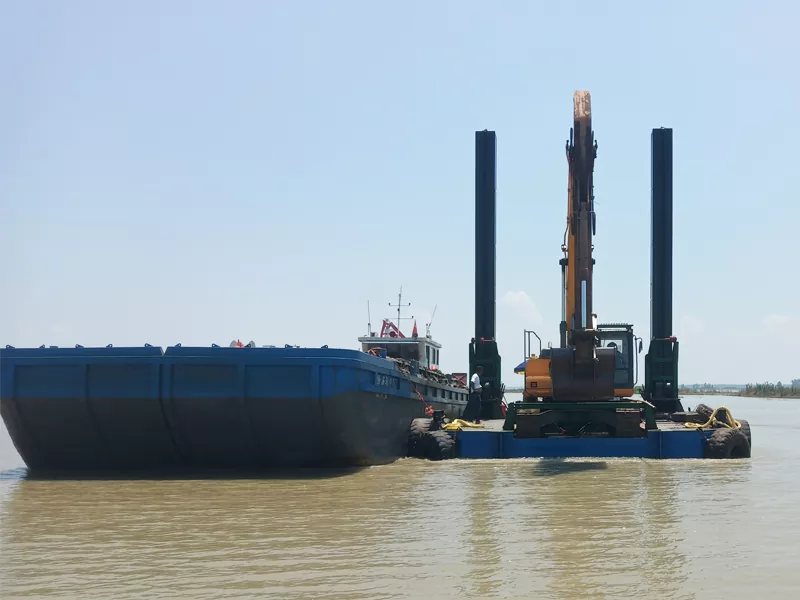 A: Stability depends on the platform size and excavator weight. We design our platforms with adjustable spud systems to ensure a firm footing on the riverbed in varying depths.