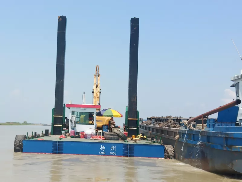 A: The River Excavator Platform can be moved using the excavator’s arm for short distances or equipped with optional hydraulic spuds and propulsion systems for precision positioning in river desilting projects.